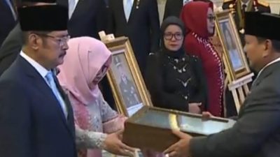 Dalam prosesi di Istana Negara, sejumlah ahli waris hadir menerima gelar secara langsung, termasuk Titiek Soeharto yang mewakili keluarga almarhum Jenderal Besar Soeharto.